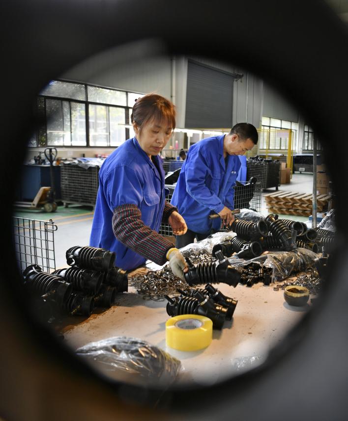 川渝高竹新区的四川迅华汽车部件有限公司员工在生产汽车配件。