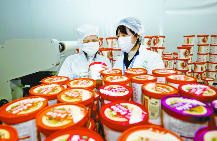 岳池经济技术开发区的四川银丰食品有限公司质检员正在对产品进行检查。