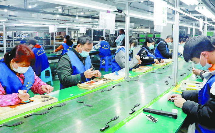 (原标题《企业节后开足马力忙生产》) 春节假期刚过,我市众多企业吹响开工“集结号”。2月18日,记者在川渝高竹新区、广安经济技术开发区、前锋工业园区、华蓥山经济开发区、岳池经济技术开发区等地看到,不少企业员工已返岗,迅速开足马力加紧生产,呈现出“不负春光开好局、收心实干正当时”的繁忙景象。 近段时间,我市各地以“开局就要奔跑,起步就是冲刺”的奋斗姿态,在以钉钉子精神“抓项目、抓政策、抓资金”的同时,当好“店小二”,围着企业转,切实帮助企业解决生产、用工等难题,千方百计为企业满负荷生产创造条件。各企业也纷纷在“早”字上下功夫,提前开工复产,有的企业甚至大年初一、初二都在加班加点忙生产,全力以赴确保一季度“开门红”,为“十四五”发展迈好第一步、见到新气象作贡献。(本报记者站 周松林 游觅 张天文 范聪 广安日报全媒体记者 曾诚 张启富 文/图)